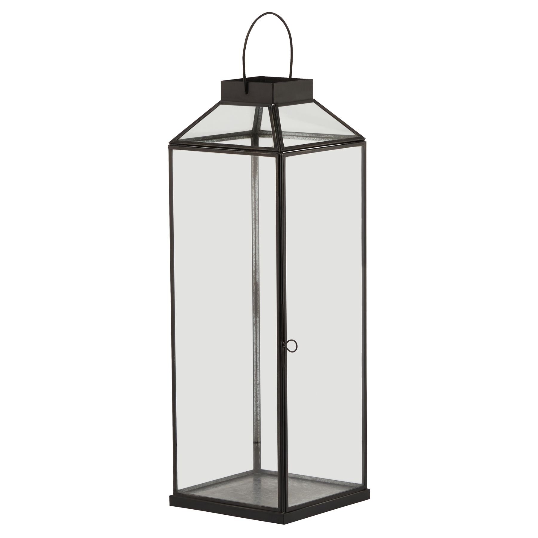 This is the Glass Top Large Black Lantern. This stylish black metal lantern is a contemporary style statement that will add not ambience and interest to a space. Additional sizes available in the same style for impactful staggered height displays. Finish the look with one of our realistic LED wax candles.