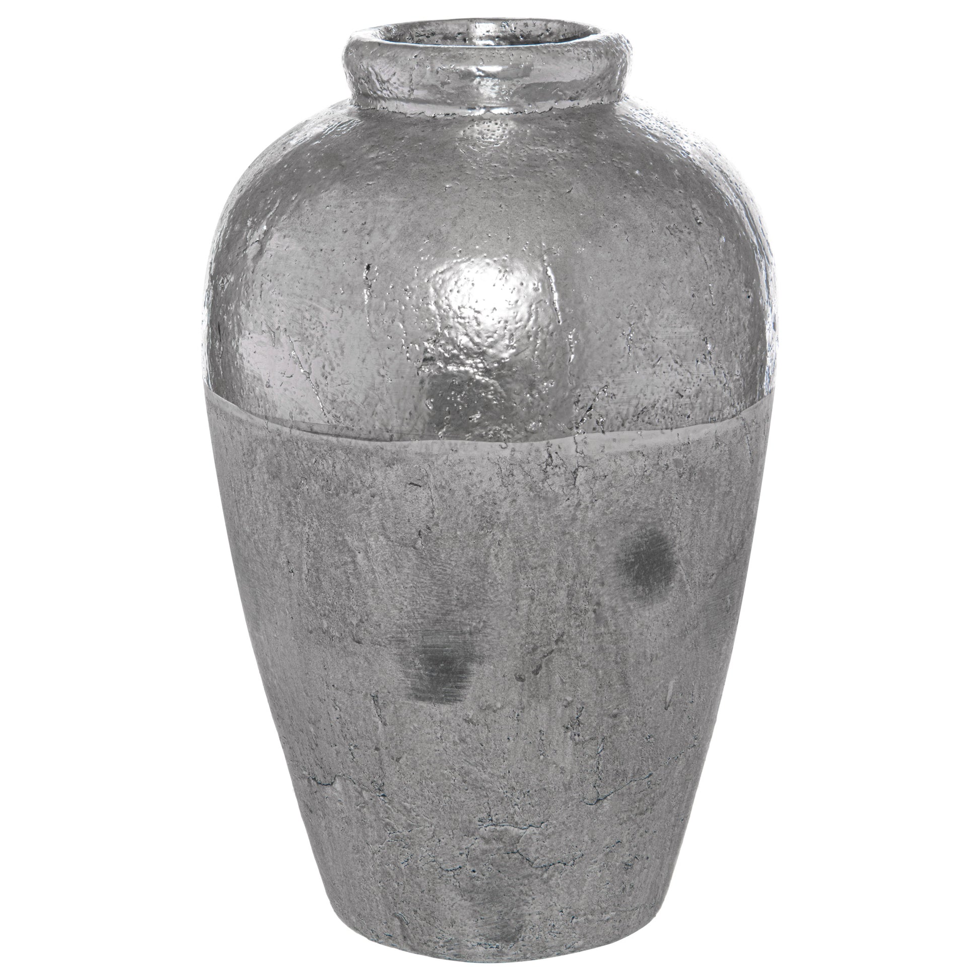 A two-tone effect that provides you with the best of both worlds, the aged stone bottom half displays distressed detailing whereas the top half is in a metallic finish with a dimpled effect. Style this vase on a piece of furniture or use it as a floor standing vase, a great eye-catching piece that will suit many interior styles. Additional versions available: 21754, 21756