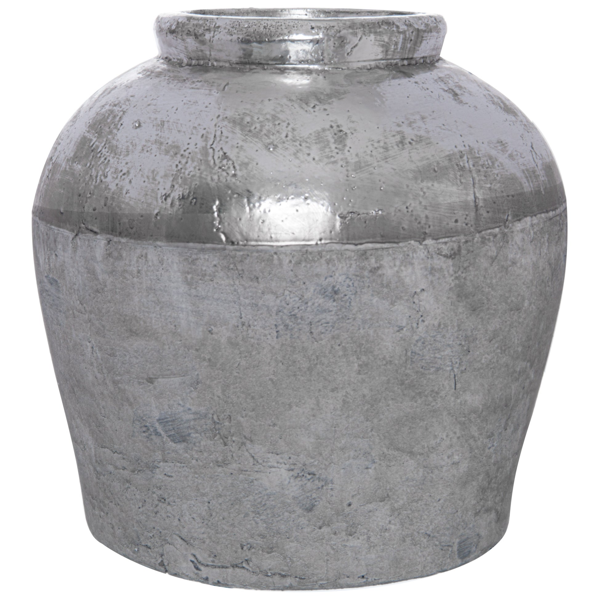 A two-tone effect that provides you with the best of both worlds, the aged stone bottom half displays distressed swishes whereas the top half is in a metallic finish with a dimpled effect. Use this vase as a centrepiece on a tables cape or style it on a console table, it's a great eye-catching piece that will suit many interior styles. Additional versions available: 21756, 21755