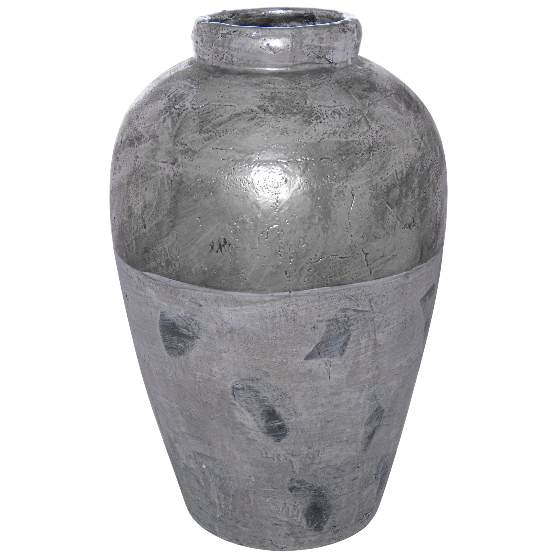 A two-tone effect that provides you with the best of both worlds, the aged stone bottom half displays distressed swishes whereas the top half is in a metallic finish with a dimpled effect. Style this vase on a piece of furniture or use it as a floor standing vase, a great eye-catching piece that will suit many interior styles. Additional versions available: 21754, 21755.
