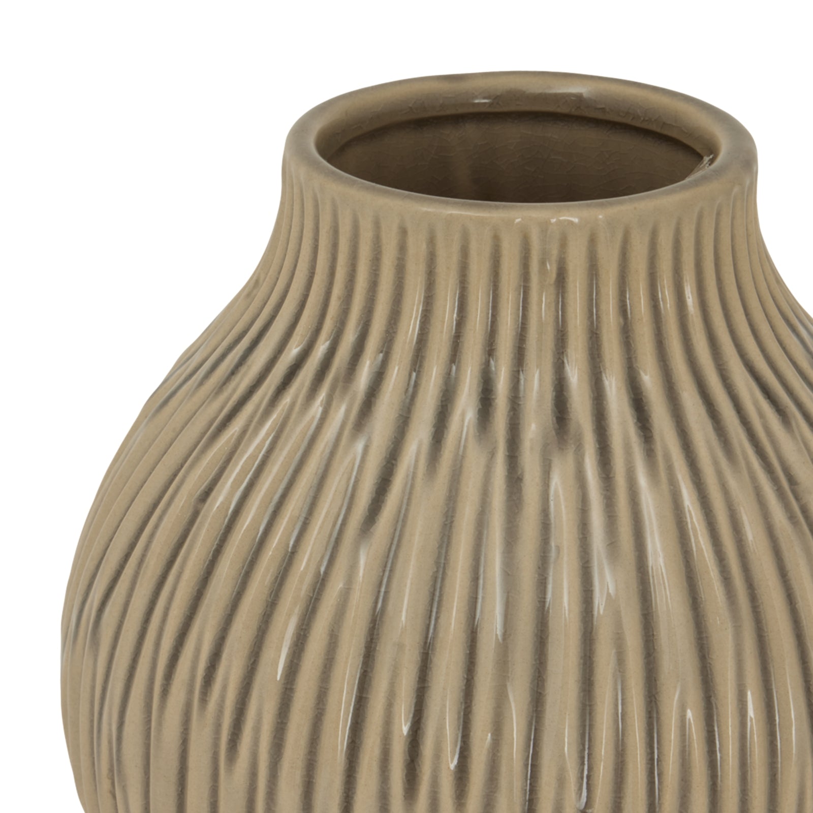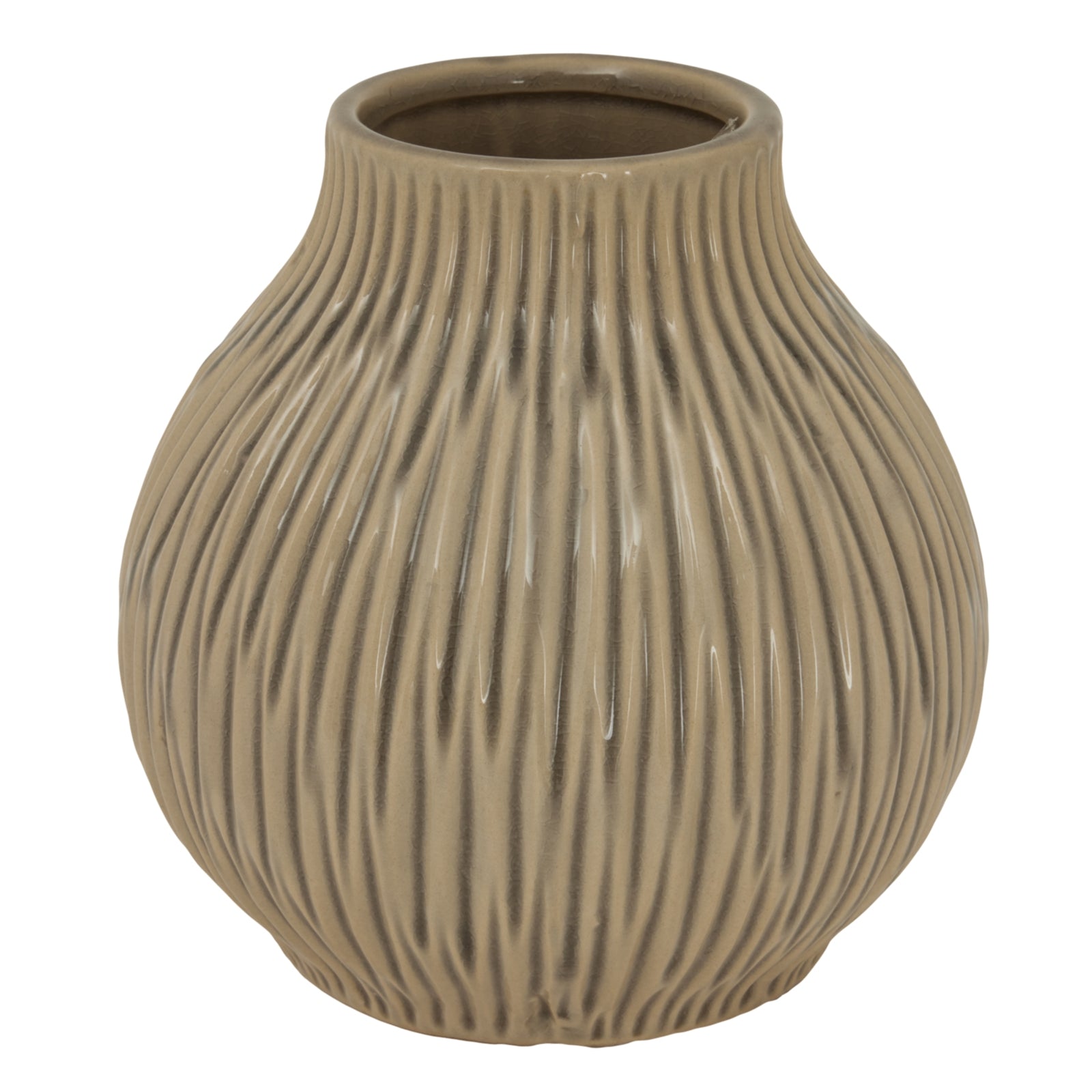 A study in organic forms and modern aesthetics, this bulbous fleck vase from the Pallida Collection presents an artful balance of shape and texture. The distinctive flecked surface treatment creates an interplay of light and shadow across its generously curved silhouette, while the balanced proportions offer visual interest from every angle. Perfect for contemporary interiors seeking a refined decorative accent, this vase makes a statement whether displayed individually or grouped with complementary pieces. The neutral palette allows for seamless integration into diverse colour schemes, while its substantial presence commands attention as a centrepiece. For maximum visual impact, pair with the coordinating pieces from the Pallida Collection, or create an eclectic display by combining with the organic forms of the Sabbia Collection's Tall Fluted Vase or Small Hollow Vase. The sculptural quality of the Seville Collection's Olive Paragon Vase offers another compelling partnership possibility, creating a curated arrangement that demonstrates an appreciation for refined design. Each vase within these collections shares a commitment to quality materials and considered proportions, ensuring a cohesive aesthetic when displayed together. The medium size proves particularly adaptable, functioning equally well as a standalone focal point or as part of a larger decorative arrangement.