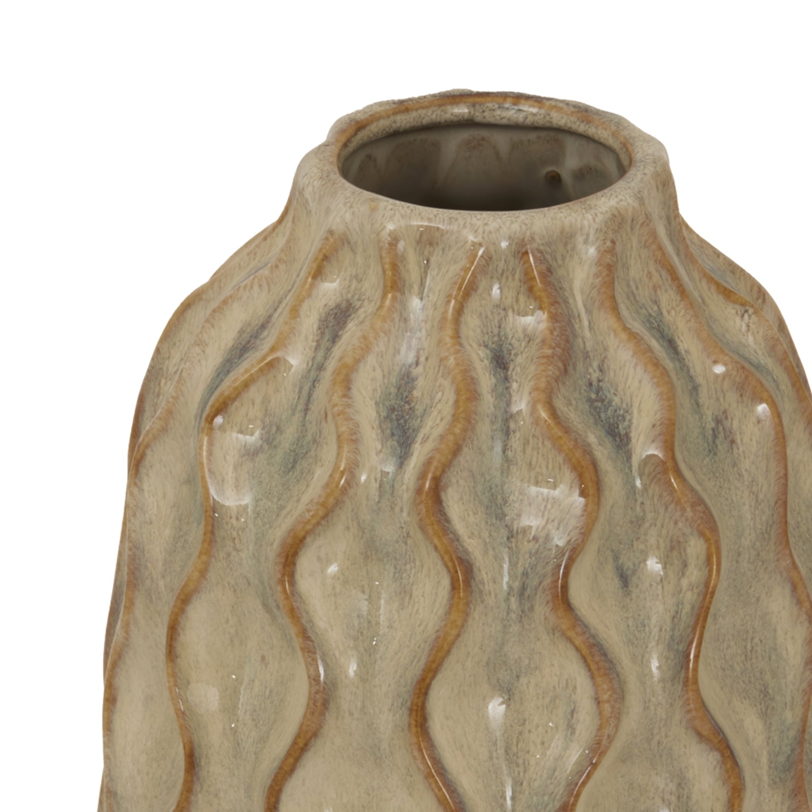 From the distinguished Sabbia Collection comes a remarkable wave vase that redefines modern aesthetics with its fluid silhouette and dynamic presence. This tall vessel showcases innovative craftsmanship through its undulating form, which mirrors the organic movement of desert dunes. The masterful interplay of light and shadow across its sculptural surface creates an ever-changing display as natural light shifts throughout the day. As part of the wider Sabbia range, this statement piece coordinates seamlessly with the collection's Squat Seed Pod Vase, offering opportunities for dramatic groupings and creative merchandising possibilities. For an eclectic yet cohesive display, consider pairing with pieces from the Pallida Collection, particularly the Small Striped Vase, whose linear patterns provide an intriguing contrast to the wave motif. The Seville Collection's Paragon Bottle Vase offers another compelling accompaniment, its classical proportions balancing the contemporary curves of the Wave Vase. The neutral palette ensures versatility across diverse retail environments, while its substantial proportions command attention whether displayed individually or as part of a curated arrangement. This piece represents the pinnacle of current interior trends, appealing to design-conscious consumers seeking sculptural elements that double as functional vessels.