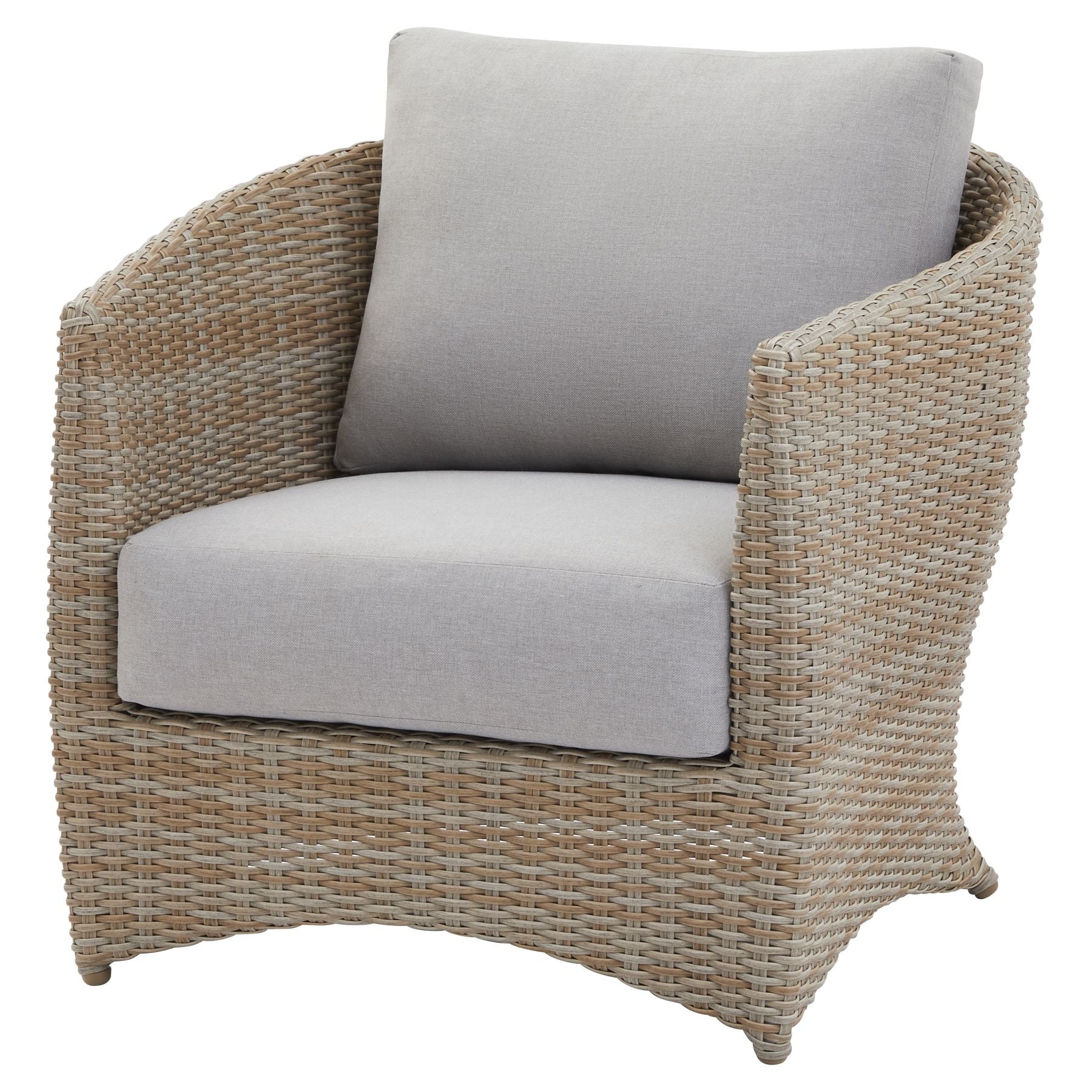 The armchairs come with comfortable seat cushions in a grade 5 Olefin fabric that keep their colour. The cushions are shower-resistant, UV-resistant and easy to remove. Because Olefins are more resistant to mildew than polyester and dry more quickly, they are an excellent choice for furniture exposed to the elements. Ideally cover them when not in extended periods of use and bring them inside during winter months for increased longevity.